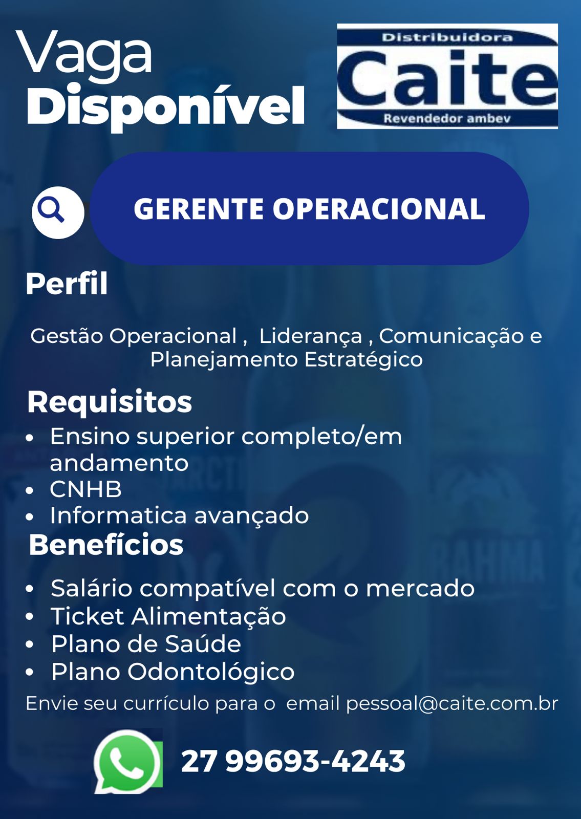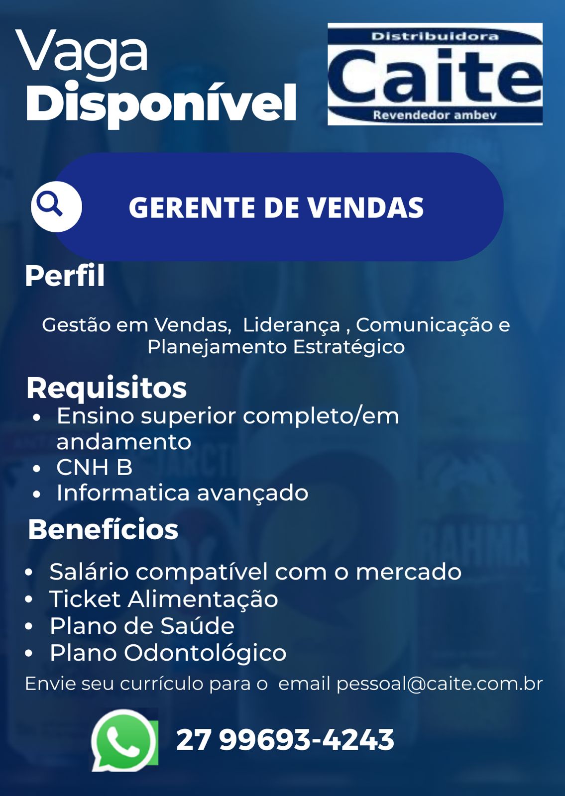 Envie o currículo para vagas@caite.com.br ou pelo whatsapp 27 99978 2015