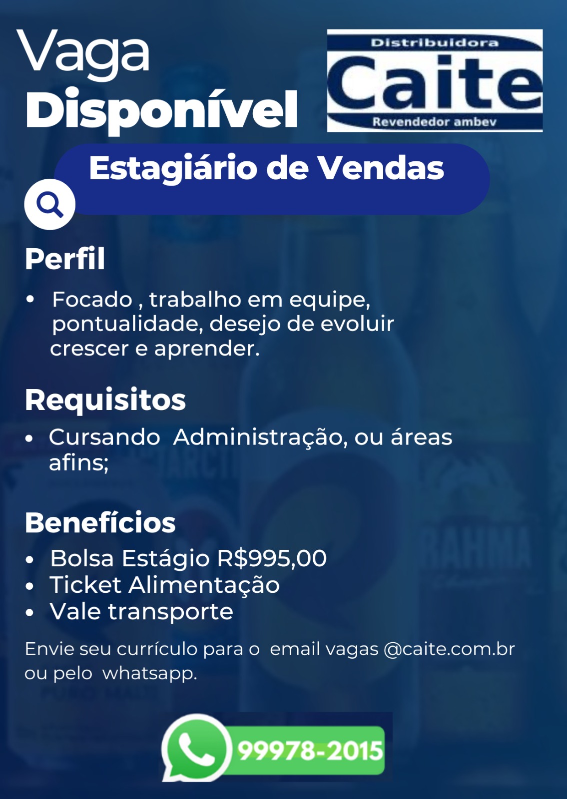 Vaga para Estágio em Vendas na Distribuidora Caite