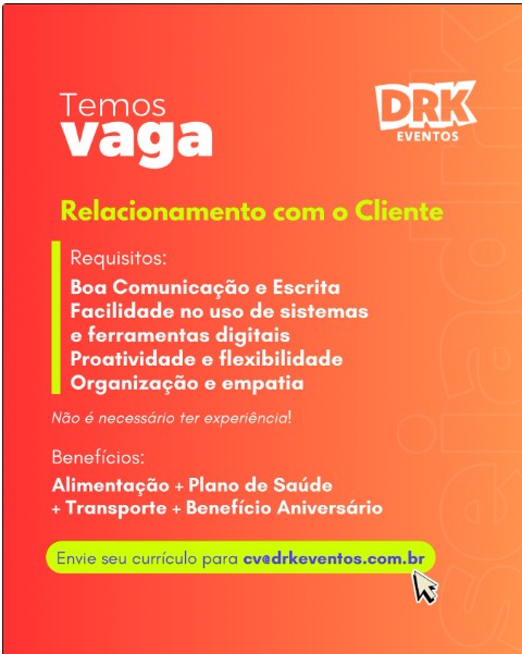 Vaga na DRK Eventos - Relacionamento com o Cliente Mais detalhes